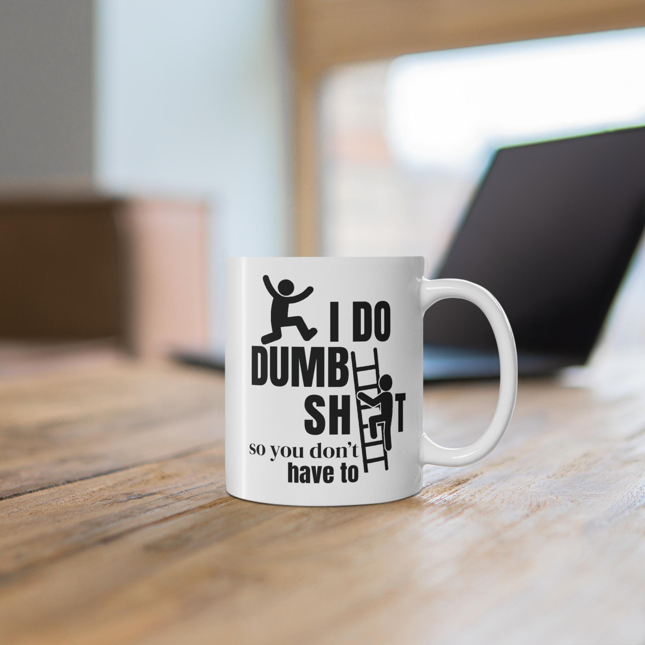 A glossy white ceramic mug featuring an original, sarcastic design inspired by everyday thoughts and side-eye moments.