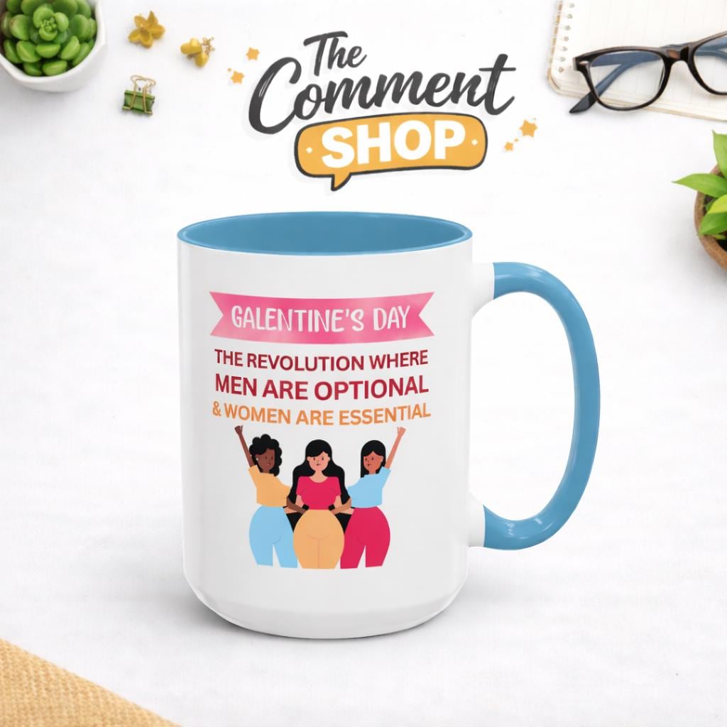 Galentine's Day Mug | Men Are Optional Women Are Essential Coffee Cup | Feminist Gift for Friends Besties Sister