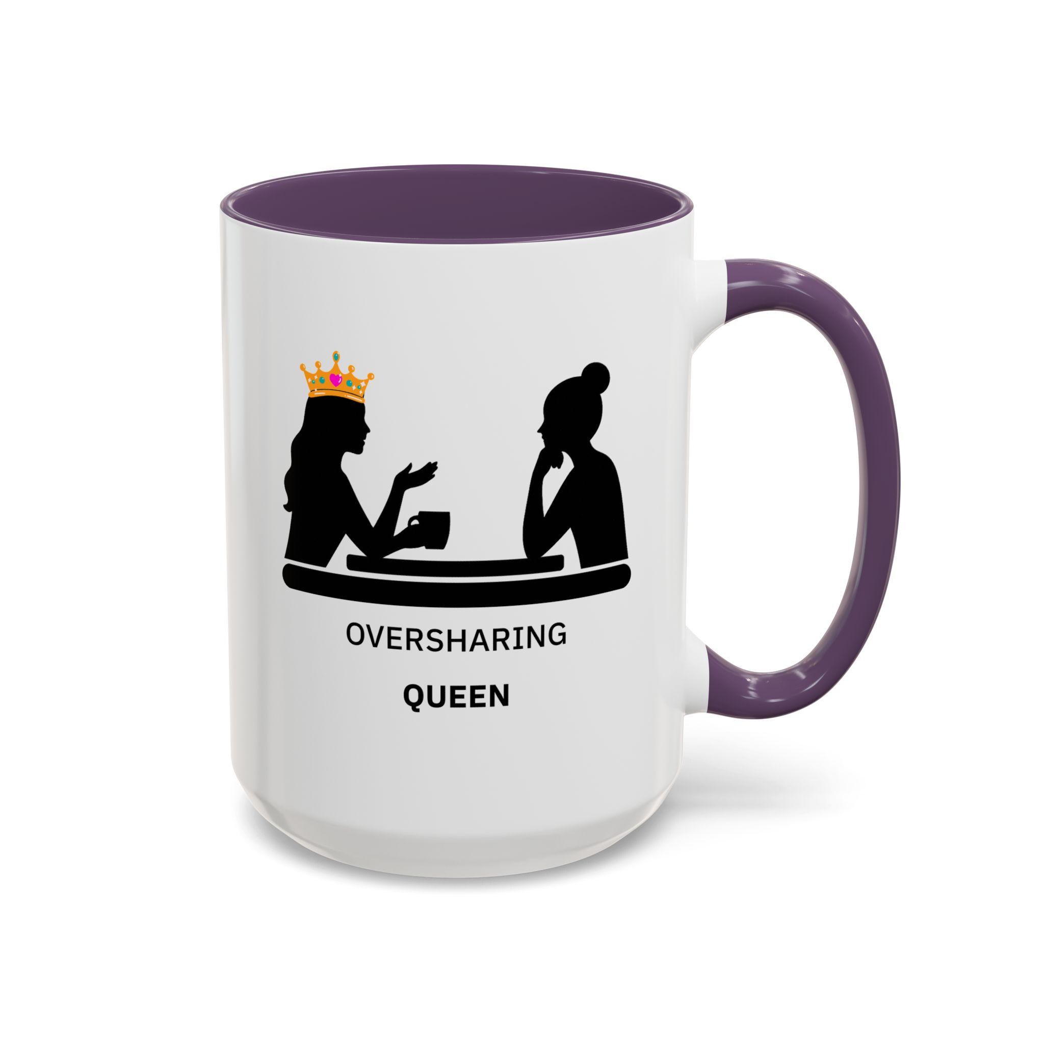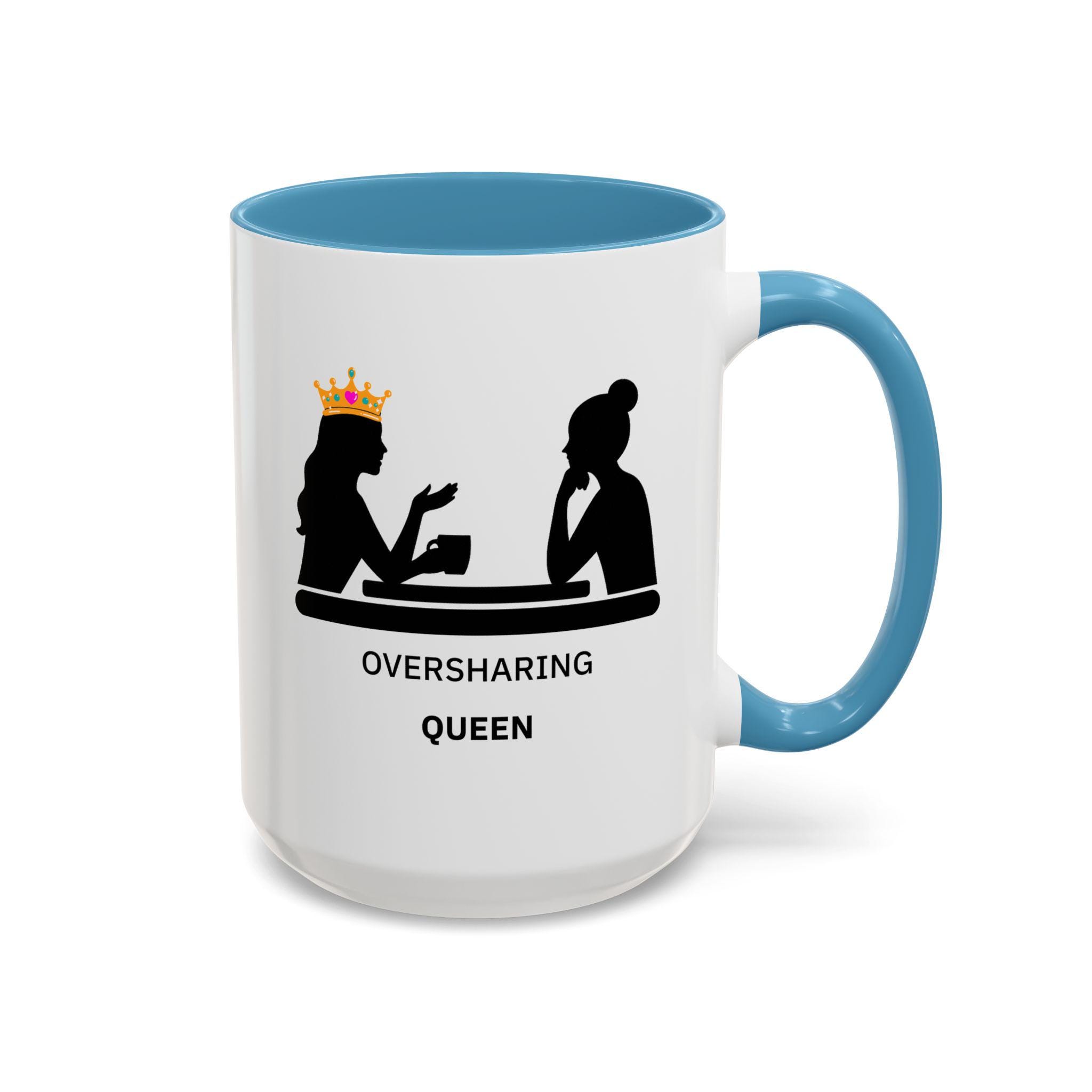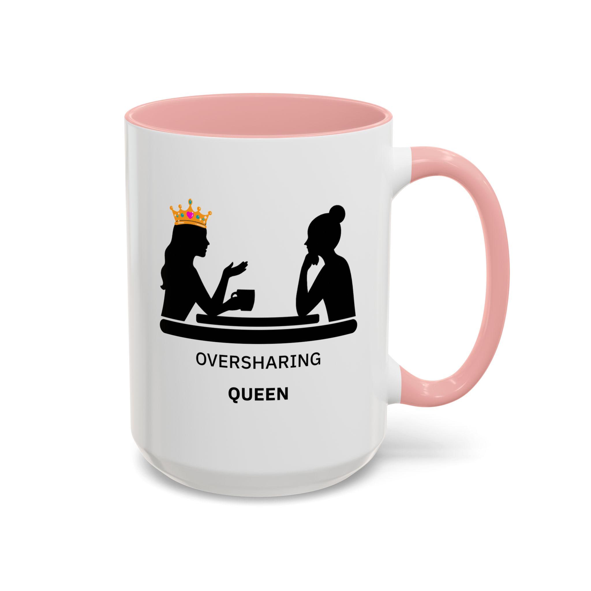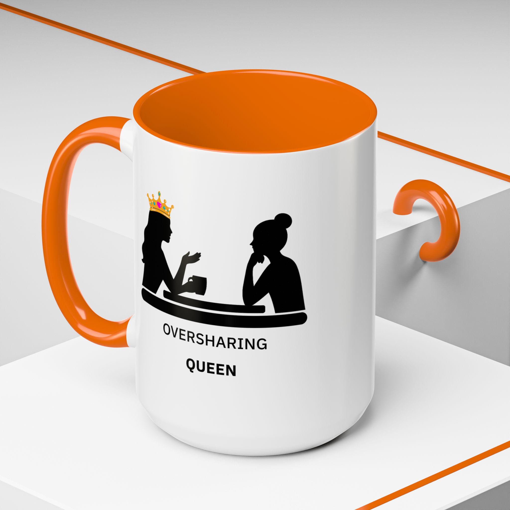 Oversharing Queen Mug | Funny Coffee Mug for Talkative Women, Best Friend Gift, Relatable Humor Cup