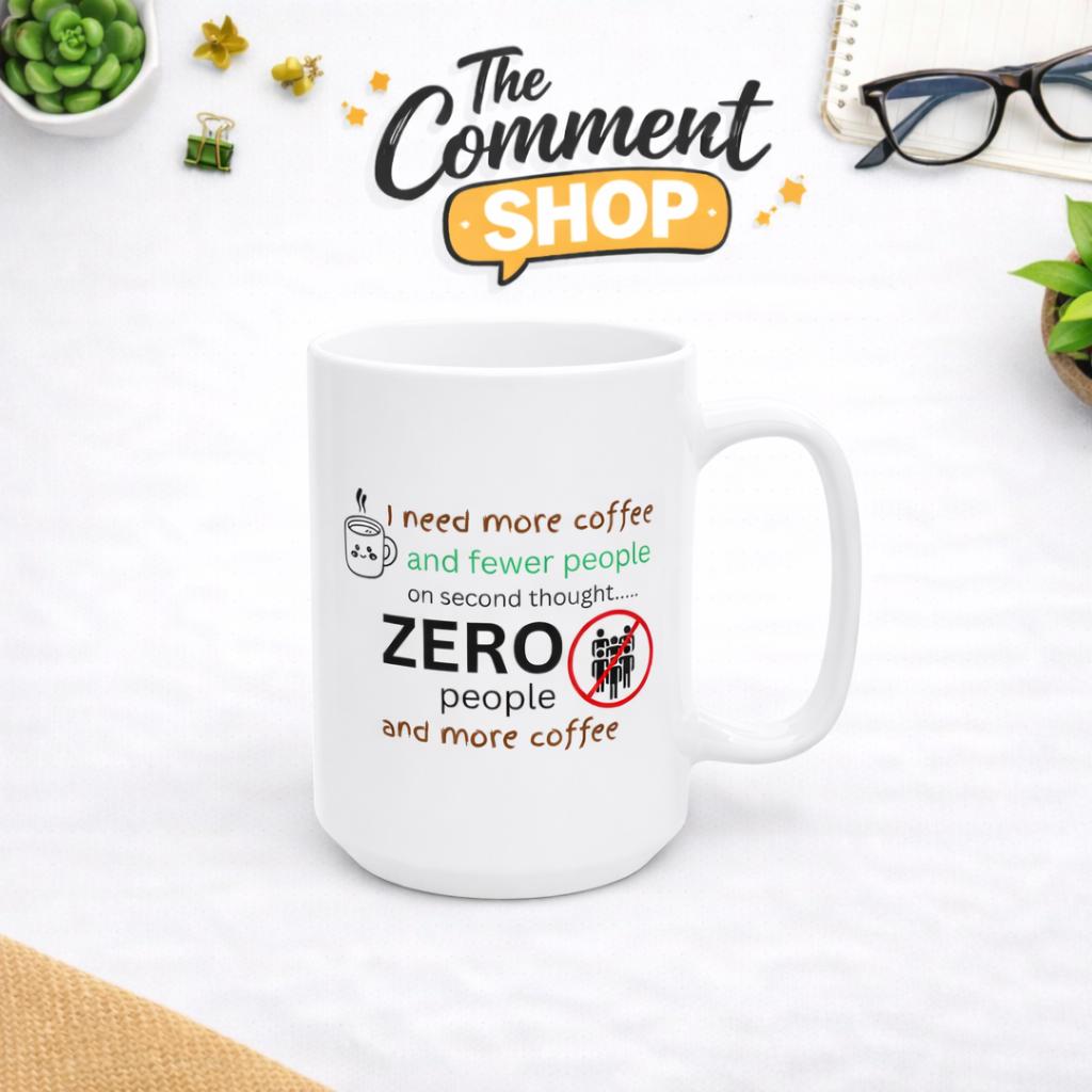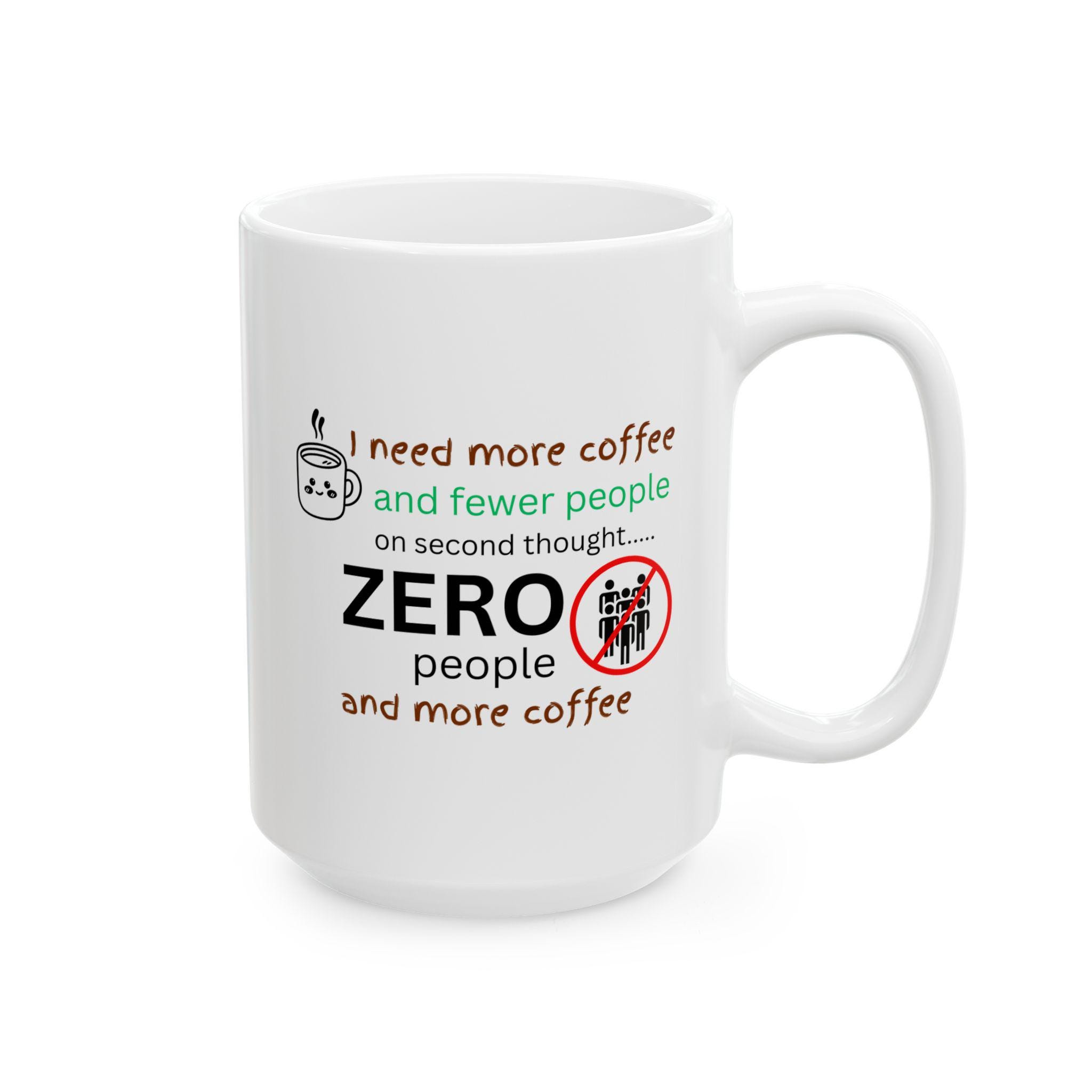 I Need More Coffee and Fewer People Mug | Funny Introvert Coffee Mug | Zero People Mug | Sarcastic Coffee Cup | Office Humor Gift